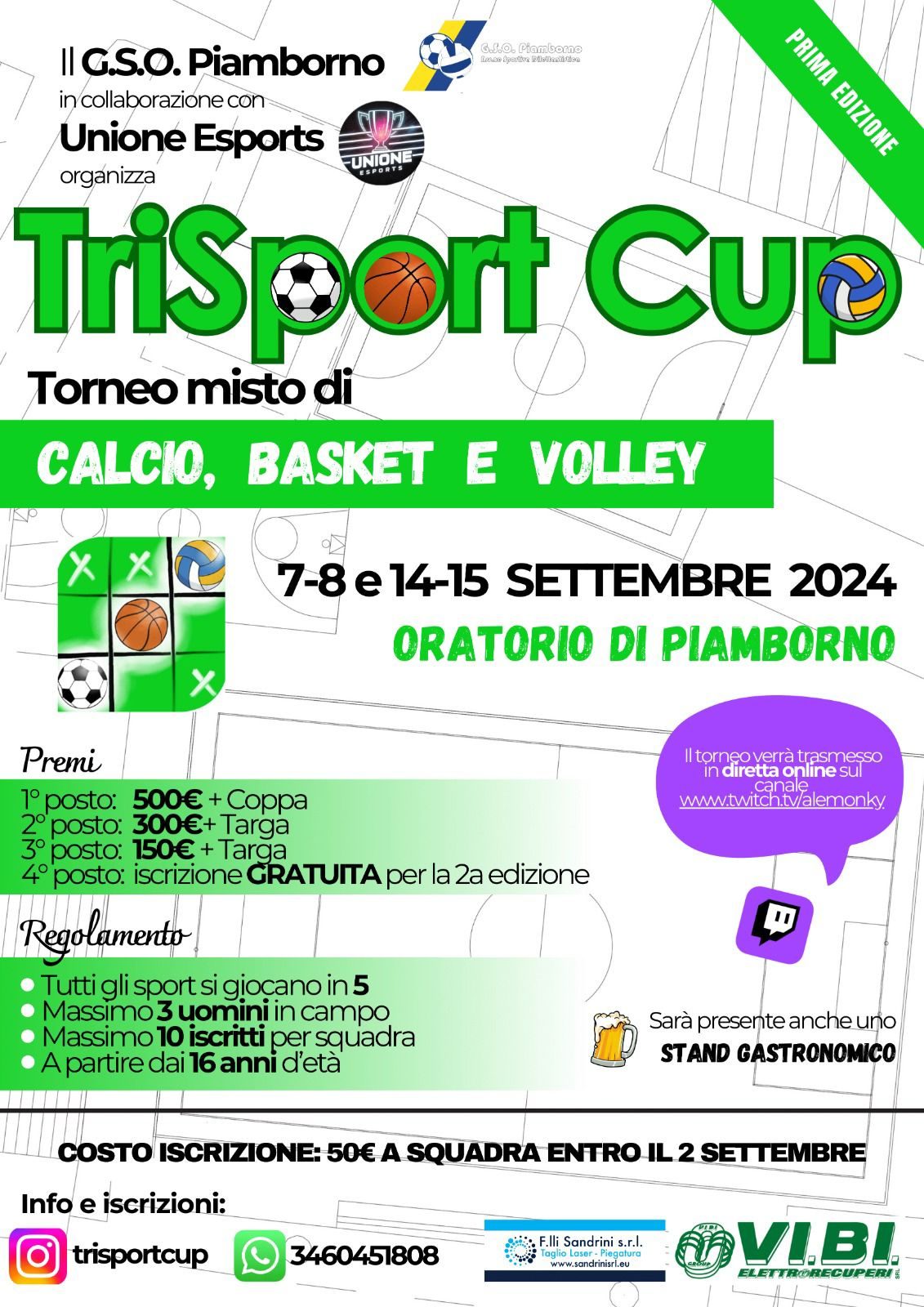 Il GSO di Piamborno in collaborazione con Unione Esports organizza la “Trisport Cup”, un torneo unico sportivo a squadre all’oratorio di Piamborno.