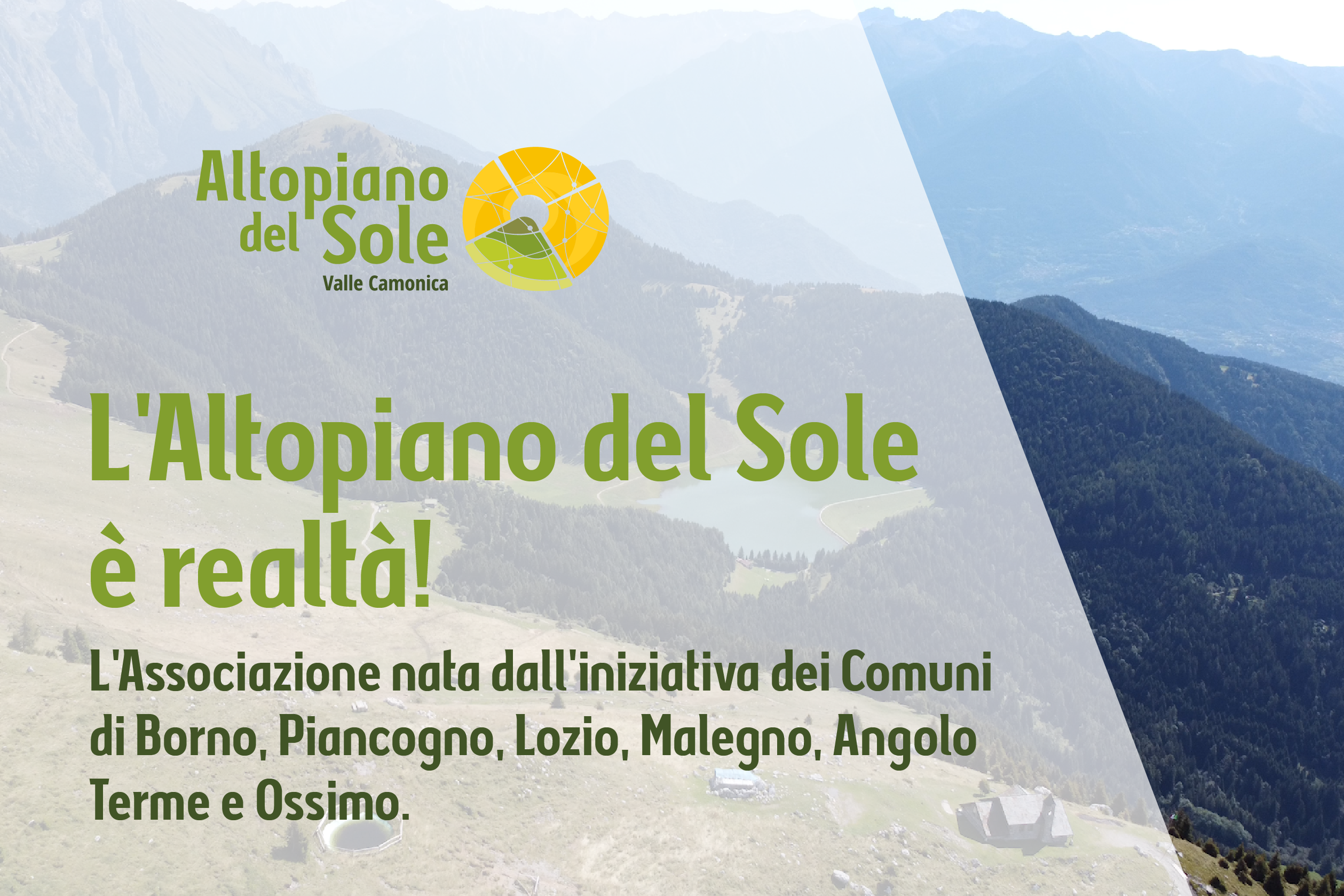 È stata costituita ufficialmente l’Associazione “Altopiano del Sole”: un progetto nato dal sodalizio tra i Comuni di Borno, Piancogno, Lozio, Malegno, Angolo Terme e Ossimo, che rappresenterà per la prima volta un territorio intercomunale.
