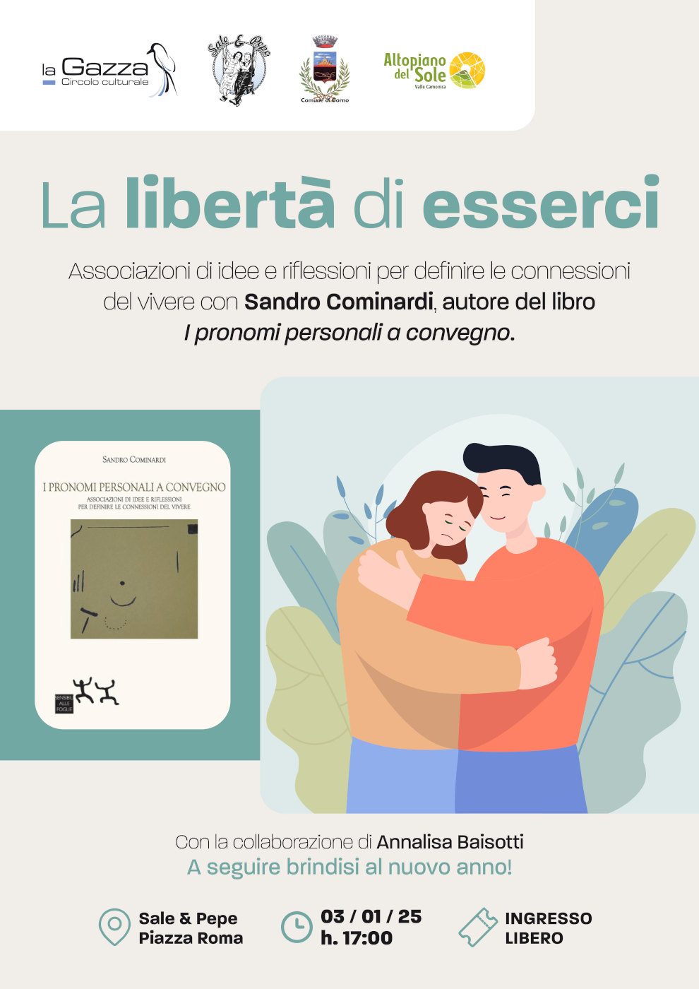 Venerdì 3 gennaio alle ore 17:00 presso l’ex Albergo Trieste in piazzetta Roma a Borno, l’Associazione Culturale “La Gazza” presenta l’evento “La libertà di esserci”.