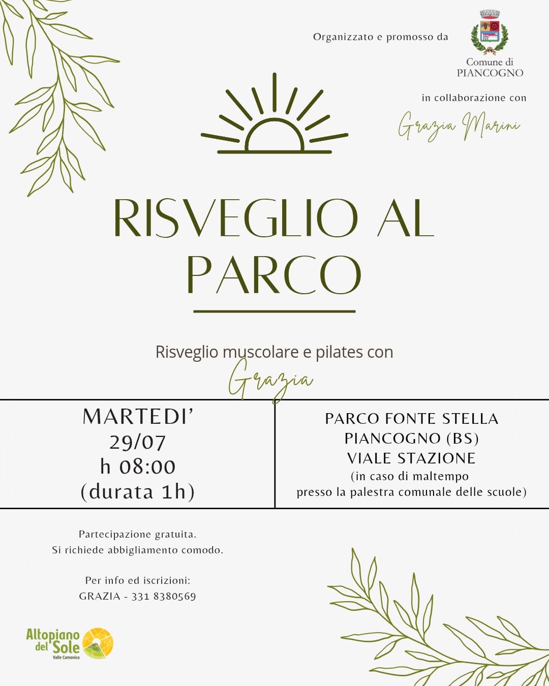 🗂️ Tipologia evento: Benessere & movimento 🏢 Organizzato da: Comune di Piancogno 📍 Luogo: PARCO PENZIG 📖 Descrizione evento: Avvicinamento allo Yoga 🔗 Link utili: 🌐 Sito Web: Nessun link disponibile 📲 Facebook: Nessuna pagina disponibile 📷 Instagram: Nessun profilo disponibile 🔄 - Aggiornato automaticamente dal sistema