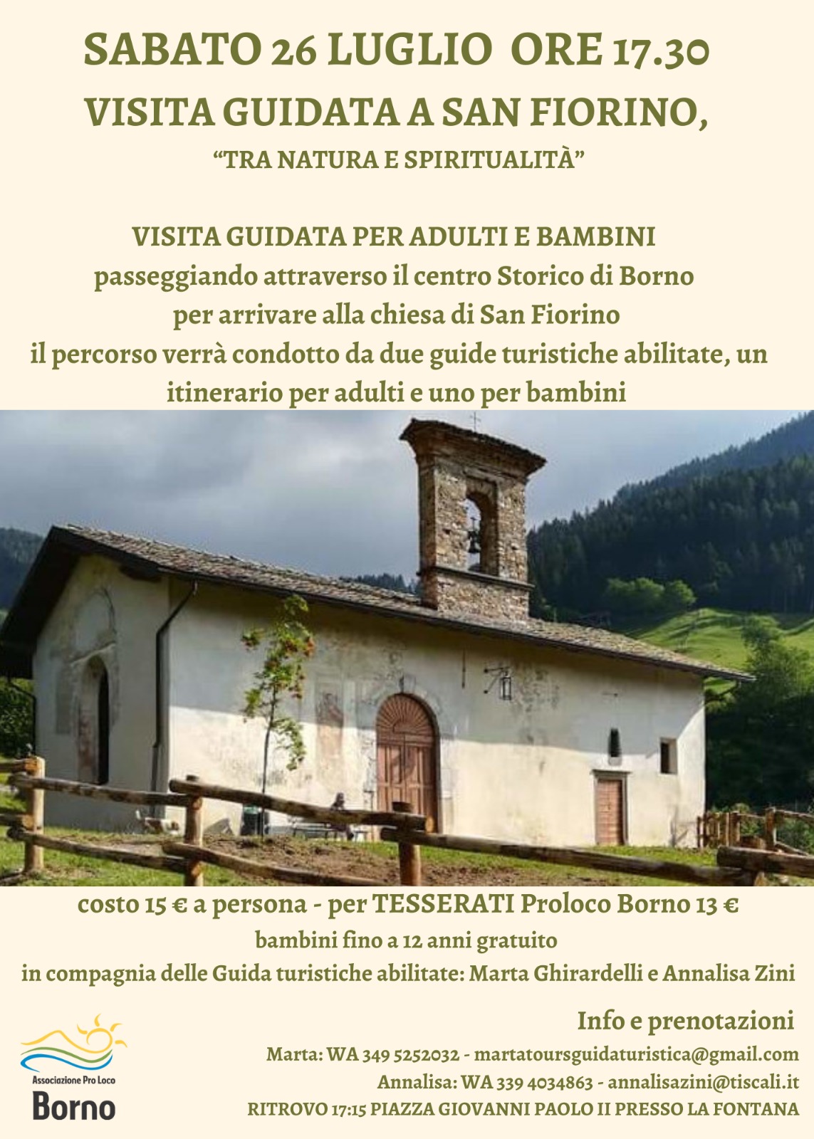 🗂️ Tipologia evento: Escursione & Visita guidata 🏢 Organizzato da: Annalisa Zini e Marta Tours Guida Turistica 📍 Luogo: BORNO E LA CHIESA DI SAN FIORNINO 📖 Descrizione evento: Visita guidata per adulti e bamini passeggiando attraverso il centro Storico di Borno per arrivare alla chiesa di San Fiornino (il percorso verrà condotto da due guide turistiche abilitate, un itinerario per adulti e uno per bambini) 🔗 Link utili: 🌐 Sito Web: Nessun link disponibile 📲 Facebook: Nessuna pagina disponibile […]