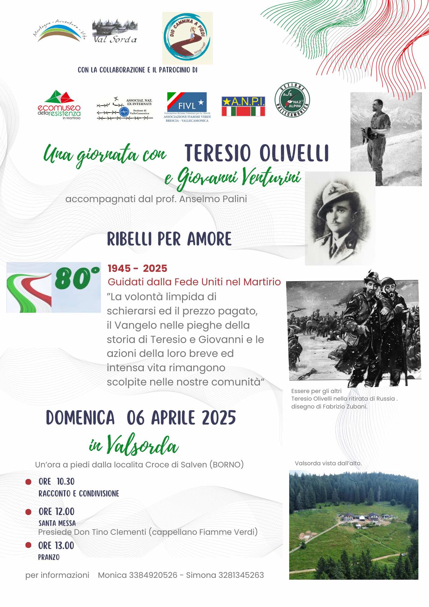 🗂️ Tipologia evento: Evento culturale 🏢 Organizzato da: M.A.V., Val Sorda e Dio cammina a piedi 📍 Luogo: VAL SORDA 📖 Descrizione evento: Accompagnati dal prof. Anselmo Palini, racconto e condivisione della vicenda biografica di Teresio Olivelli e Giovanni Venturini, due giovani “ribelli per amore”. 🔗 Link utili: 🌐 Sito Web: Nessun link disponibile 📲 Facebook: https://www.facebook.com/groups/amicigruppomav/?locale=it_IT 📷 Instagram: Nessun profilo disponibile 📎 (https://drive.google.com/file/d/1yCfOyLgeLYng5EQBVHa8Cbxp2fEhUD7I/view) 🔄 - Aggiornato automaticamente dal sistema