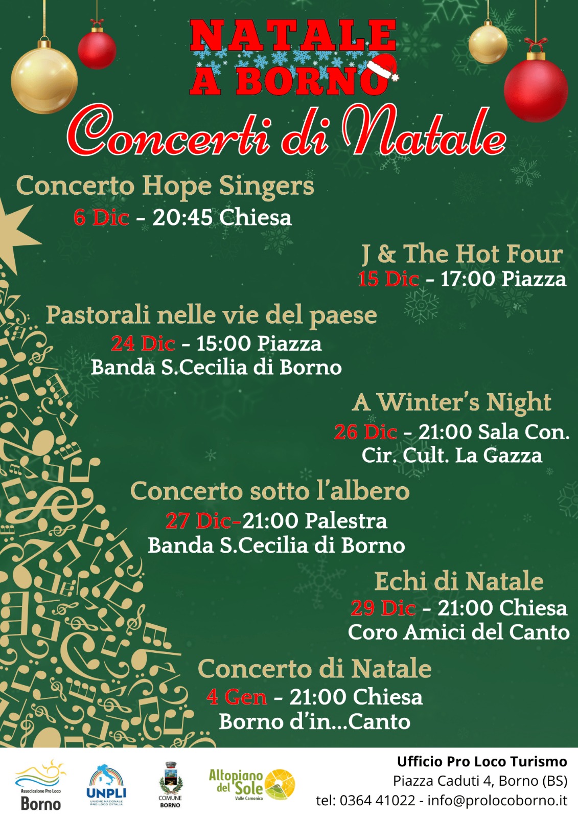 ποΈ Tipologia evento: Concerto & Festival musicale π’ Organizzato da: Pro Loco Borno π Luogo: PIAZZA GIOVANNI PAOLO II π Descrizione evento: Just a "Simple" Quartet + 1 in Christmas π Link utili: π Sito Web: Nessun link disponibile π² Facebook: Nessuna pagina disponibile π· Instagram: Nessun profilo disponibile π - Aggiornato automaticamente dal sistema