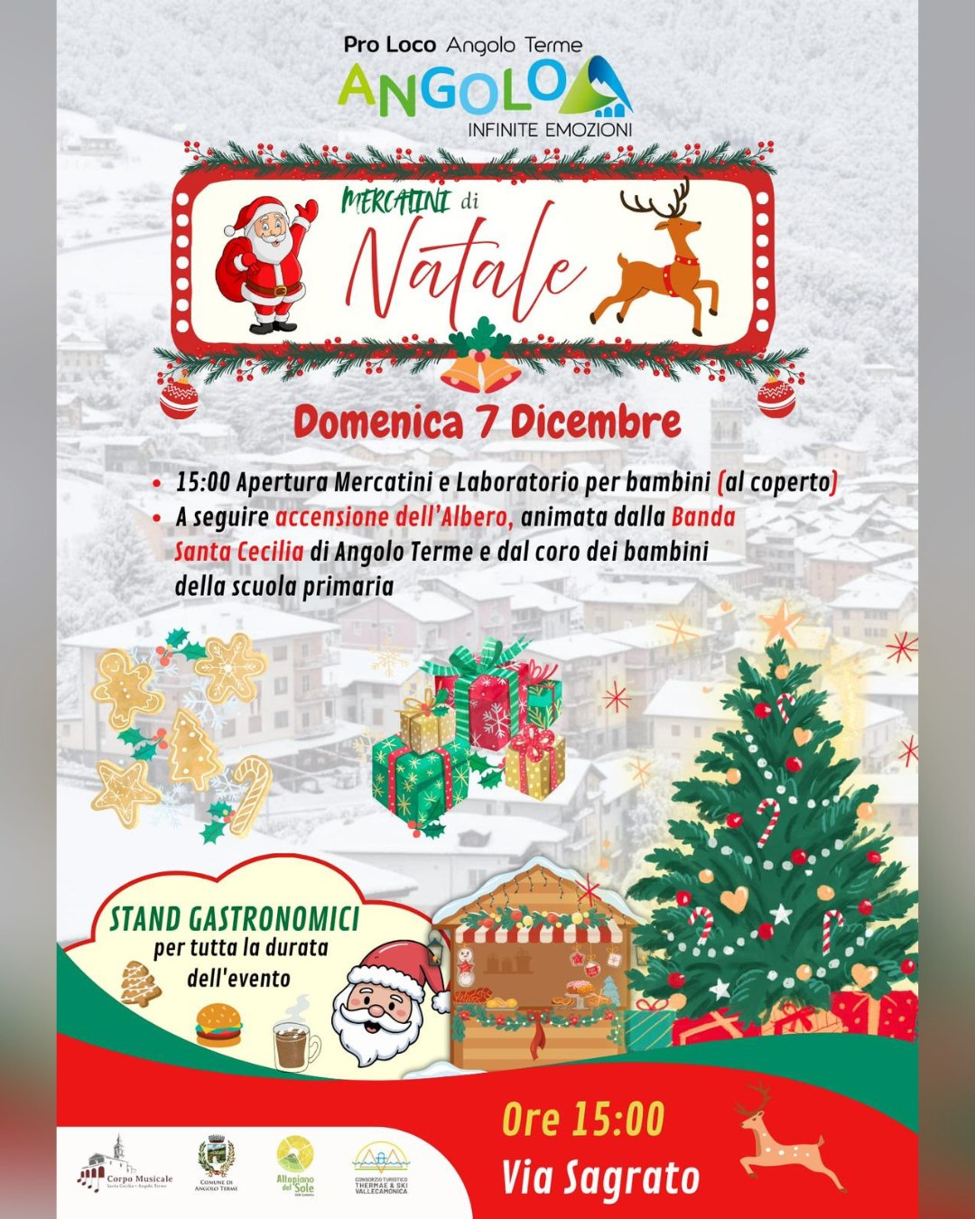 ποΈ Tipologia evento: Fiera & Mercatino π’ Organizzato da: ProLoco di Angolo Terme Infinite Emozioni π Luogo: VIA SAGRATO π Descrizione evento: I Mercatini di Natale di Angolo Terme sono un evento festivo ideale per le famiglie. L'apertura pomeridiana dei mercatini al coperto Γ¨ seguita dal momento clou della giornata: l'accensione dell'albero di Natale. Questo momento magico sarΓ allietato dalle musiche della Banda Santa Cecilia di Angolo Terme e dalle voci del coro dei bambini della scuola primaria. Saranno presenti […]