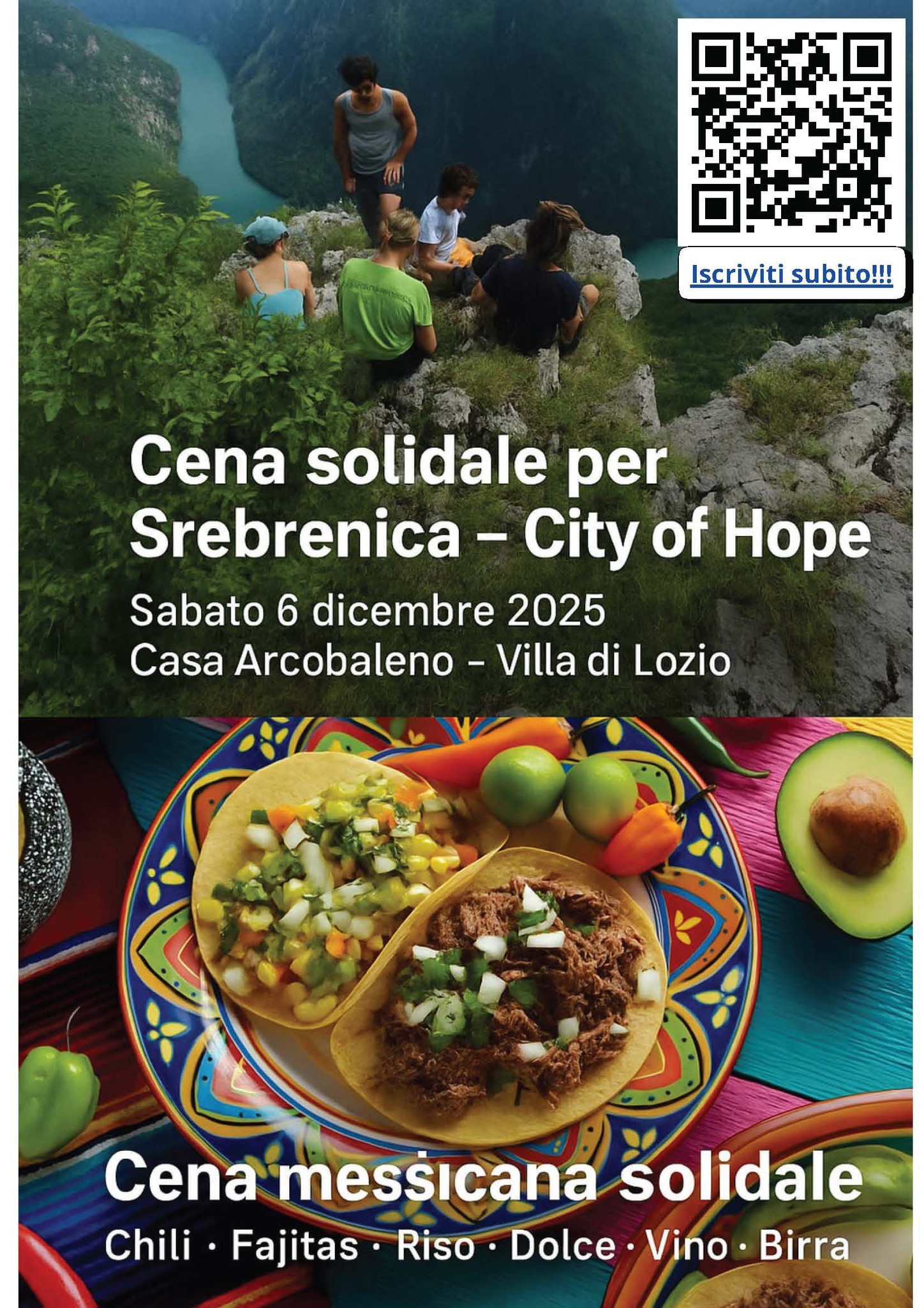 ποΈ Tipologia evento: Evento benefico & di solidarietΓ π’ Organizzato da: GIAN - Gruppo Italiano Amici della Naturaπ Luogo: CASA ARCOBALENO DI VILLA DI LOZIOπ Descrizione evento:Una tipica cena messicana, in ottima compagnia, per sostenere il progetto Srebrenica - City of Hope e il villaggio ecoturistico Ekometa, con la presenza del suo fondatore Irvin Mujcic. Una serata di gusto, amicizia e speranza, con possibilitΓ di pernottamento in loco. Scopri il progetto su: https://srebrenicahope.wordpress.comπ Link utili:π Sito Web: Nessun link disponibileπ² Facebook: […]