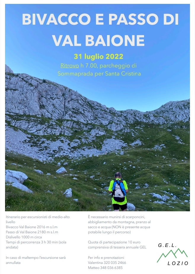 ESCURSIONE AL BIVACCO E PASSO DI VAL BAIONE