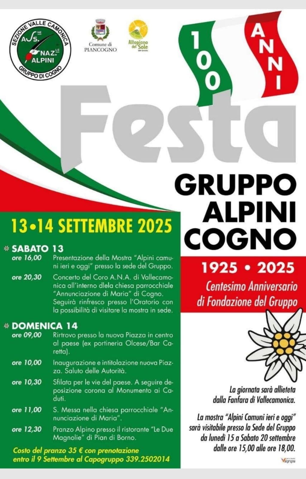 FESTA GRUPPO ALPINI COGNO, CENTENARIO DI FONDAZIONE.