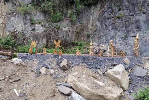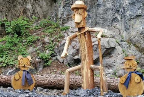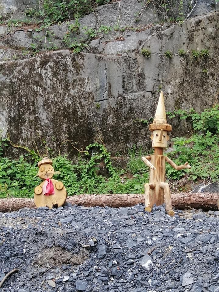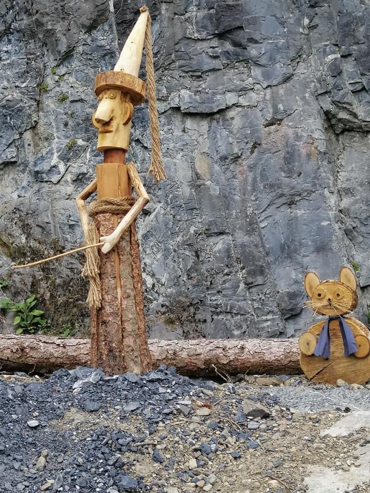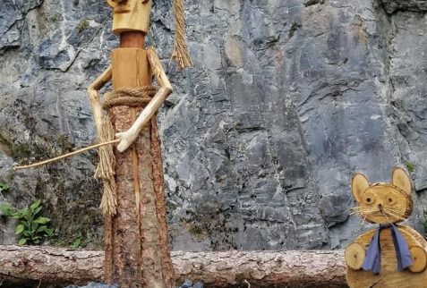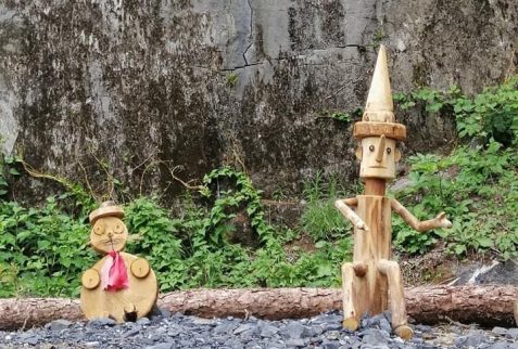 La zona dell’area pic nic è stata allestita con delle bellissime sculture di legno raffiguranti la famosa storia di Pinocchio.