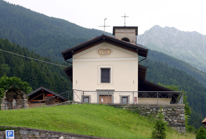 Sul lato destro della statale Borno-Dezzo, giusto all’ingresso del minuscolo agglomerato urbano di Paline, frazione di Borno, si erge, sopra un promontorio naturale, un modesto santuario seicentesco. Anticamente era consacrato alla SS.Trinità, mentre attualmente la chiesa onora la figura di Sant’Anna, santo patrono della frazione.