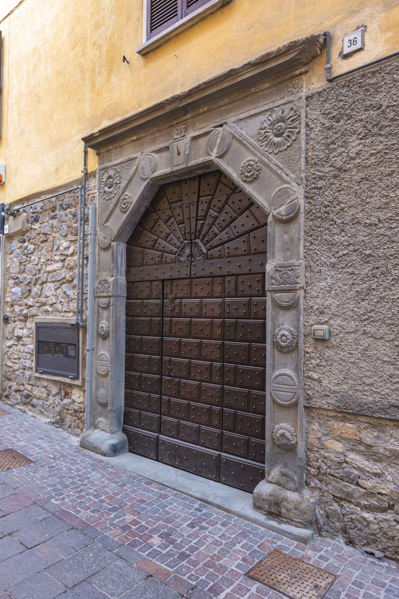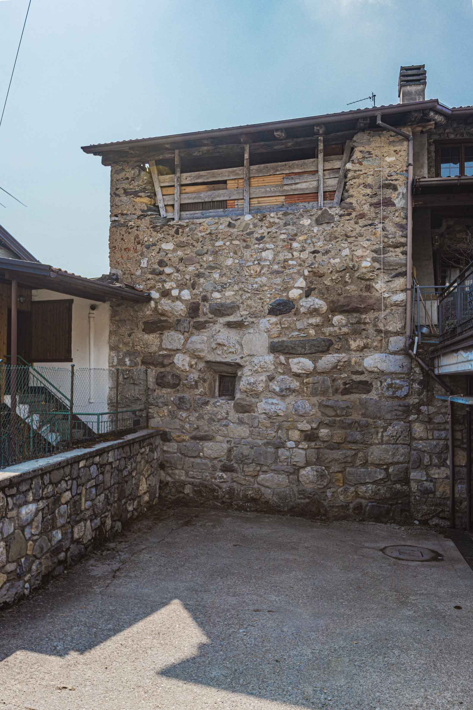 Negli edifici a lato della torre sono presenti quattro portali quattrocenteschi (due per lato) con arco a pieno centro: segno inequivocabile che le costruzioni in muratura che circondavano la torre furono fatte o rifatte in quel secolo.
