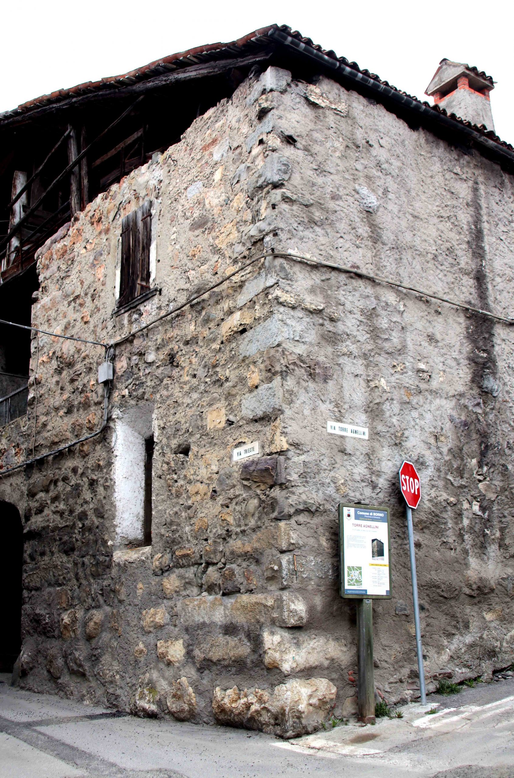 Datata al XIII secolo dovette svettare tra le altre torri di Borno. Attualmente si eleva per cinque piani: due, infatti, sprofondano rispetto al livello dell’attuale Via Vittorio Veneto e sono inclusi nei magazzini dei negozi circostanti.