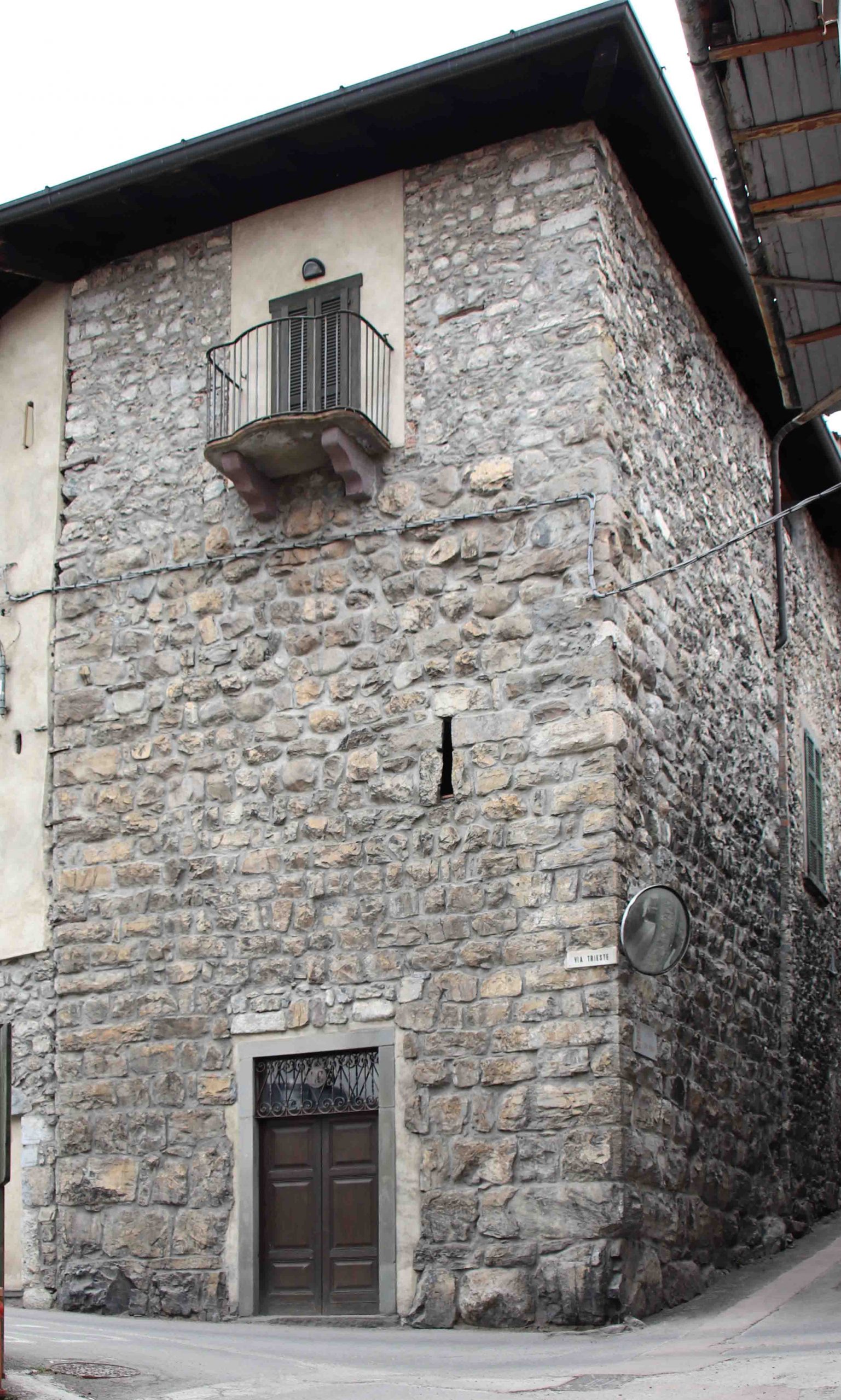 La struttura è stata invasivamente ristrutturata durante il secolo scorso: spogliata del manto murario esterno per regolare finestre, porte e vetrine. Ciò è stato possibile per la tipologia costruttiva che si riscontra in tutte le torri del borgo. I muri delle torri sono costituiti da tre strati giustapposti: muro esterno, muro interno e intercapedine tra i due, riempita con sassi e malta. In alcuni casi, caduta la funzione difensiva, la torre fu adibita ad abitazione, svuotando l’interno e lasciando solo il muro esterno. In questo caso invece venne manomesso il rivestimento esterno.